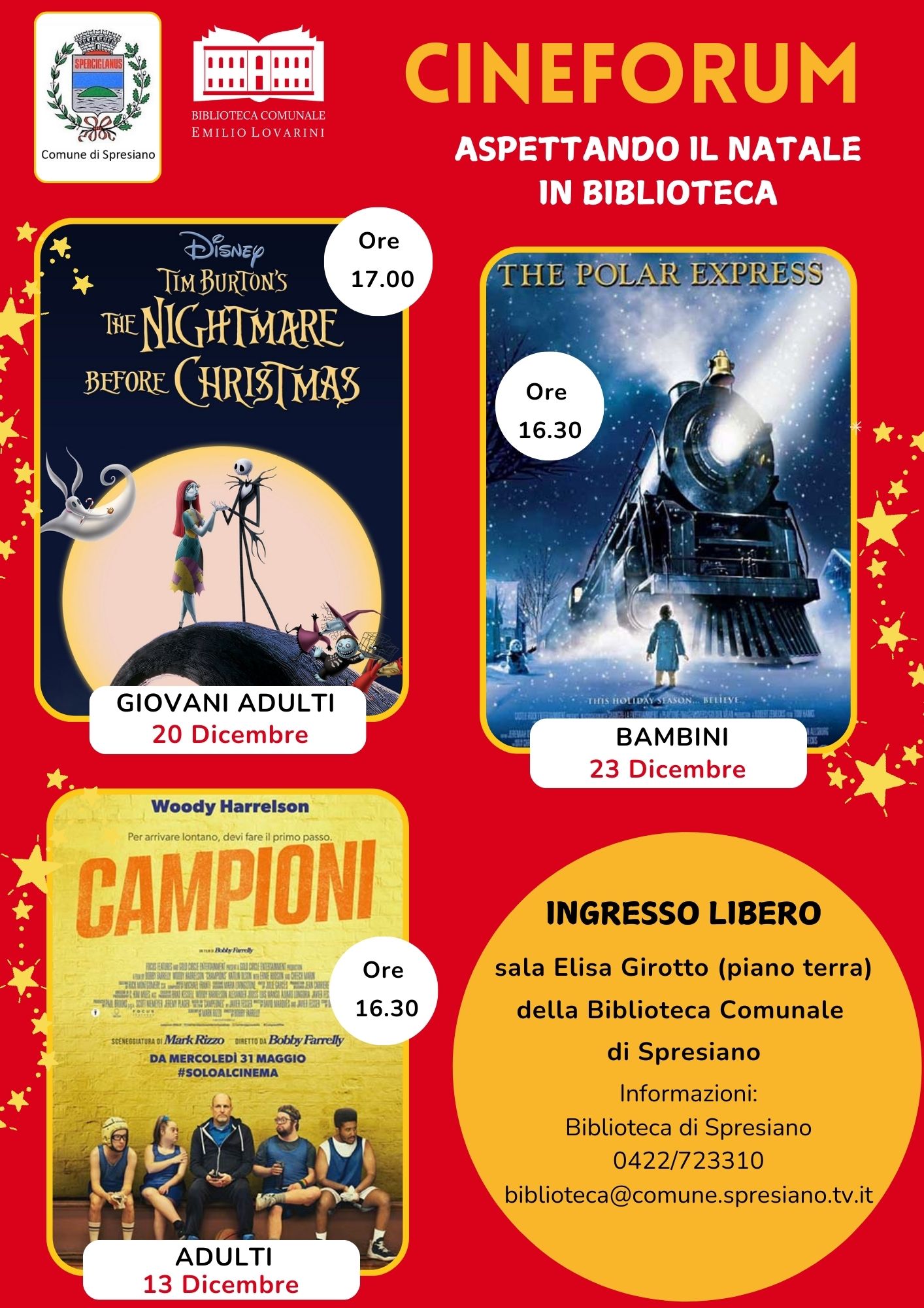 In attesa del Natale la Biblioteca Comunale propone la proiezione di tre film in orario pomeridiano.